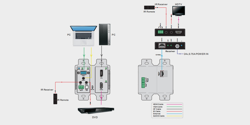 DP HDMI VGA 3in1 To HDBaseT Signal Converter
