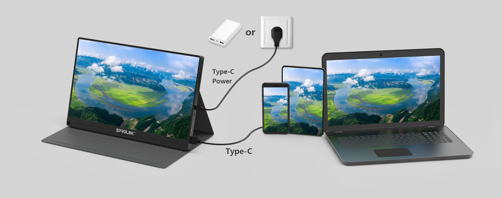 ● 【Porta Type-C com todos os recursos】Conecta seu laptop através de um cabo USB-C para reprodução de áudio e vídeo. O carregamento reversível pode ser feito conectando um adaptador de energia externo.