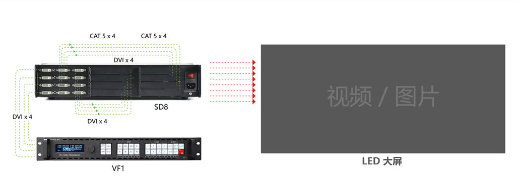 SD8 sending card box with 4-DVI in and  8-DVI out.